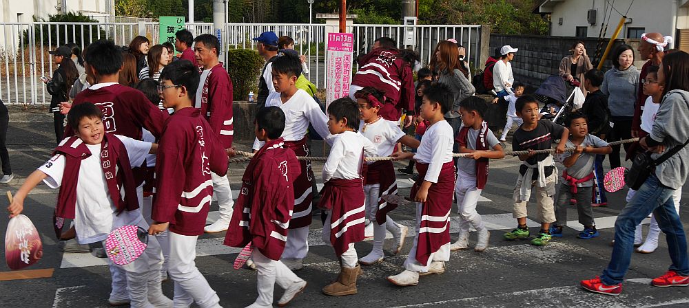 会場から出発した地車はもう一つの集結場所であるサンヨーメディカルまで曳行し、