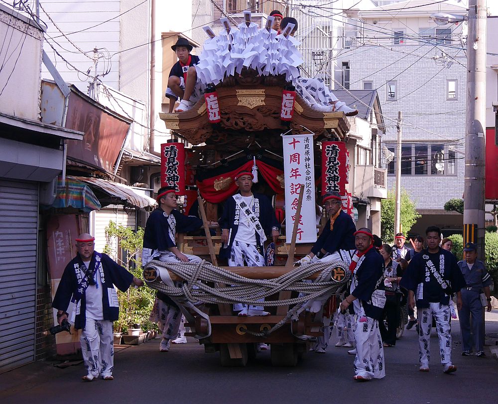 平成28年7月17日、生野区の清見原神社合祀記念祭10周年記念曳行を見に行ってきました。 夏祭りの前日に行われる合祀記念祭ももう10周年なんですね。 いつもは夜9時半頃に神社境内に4台の地車が集結するのですが、10周年の今年は 午後の明るい時間帯に4台の地車での記念曳行が行われました。 では、生野区の清見原神社合祀記念祭10周年記念曳行画像その2:片江訪問をご覧下さい。