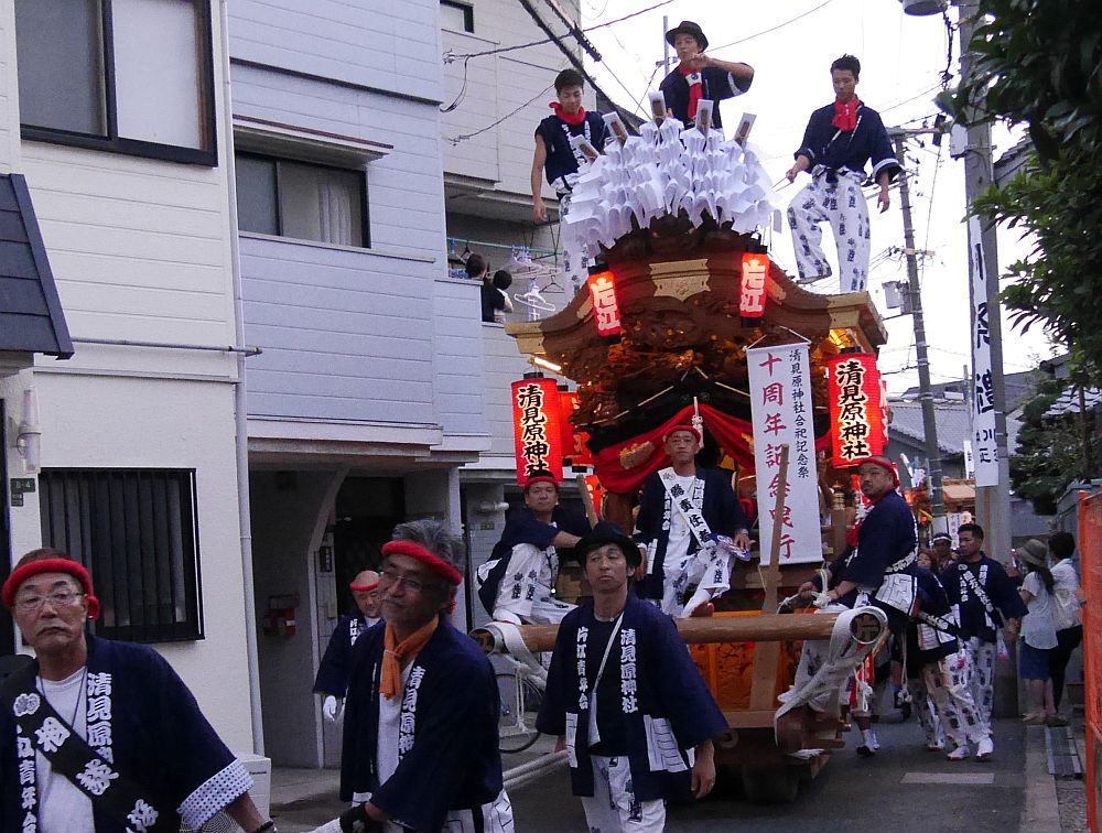 平成28年7月17日、生野区の清見原神社合祀記念祭10周年記念曳行を見に行ってきました。