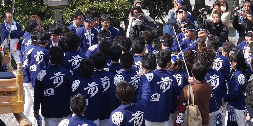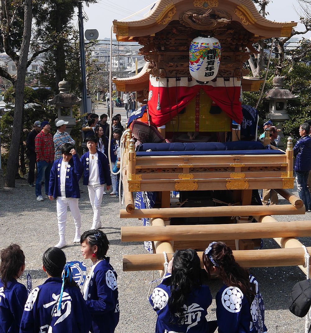 正午前、地車の周りにハッピ姿の若者が集まってきました。