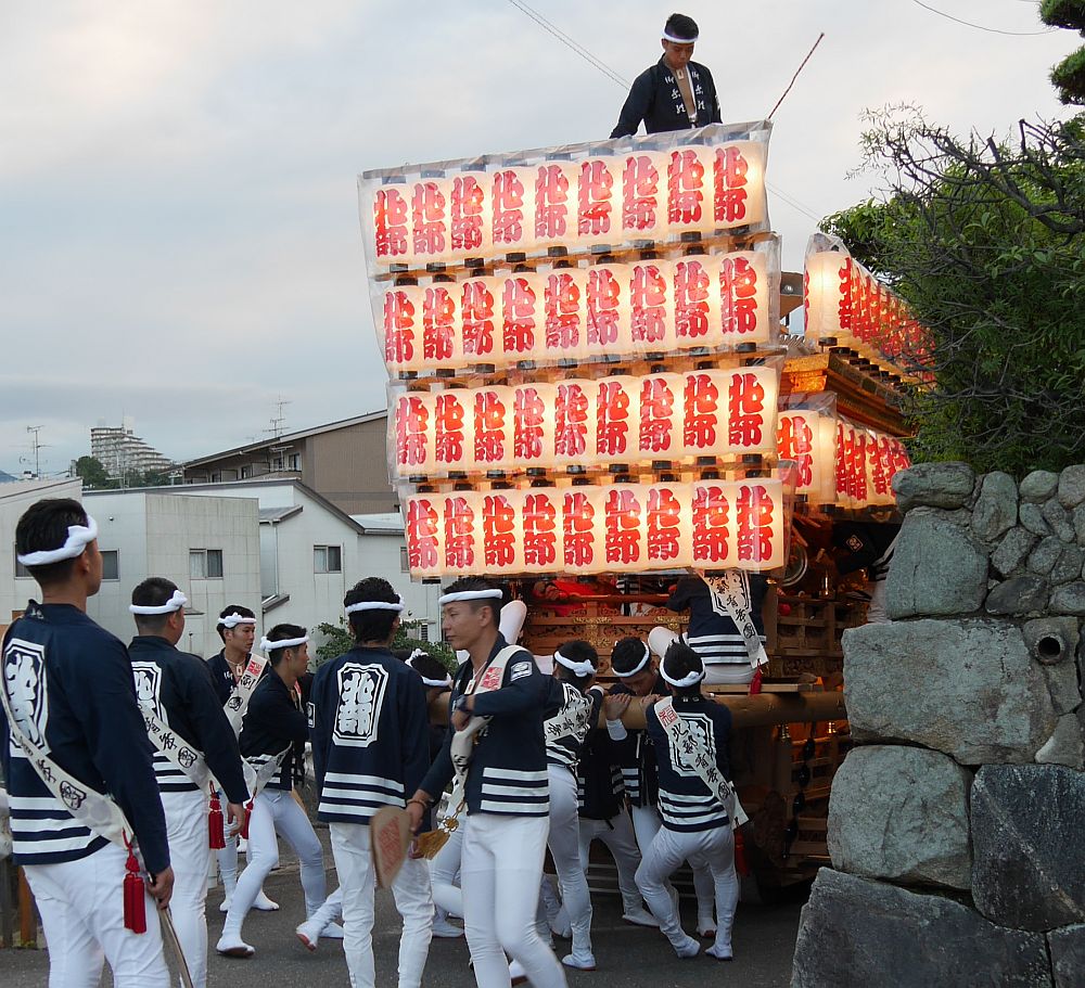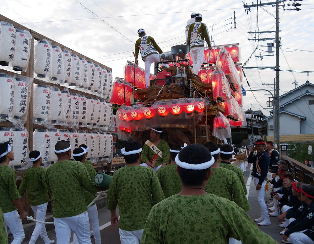 夜の曳行準備中の三日市北部地車