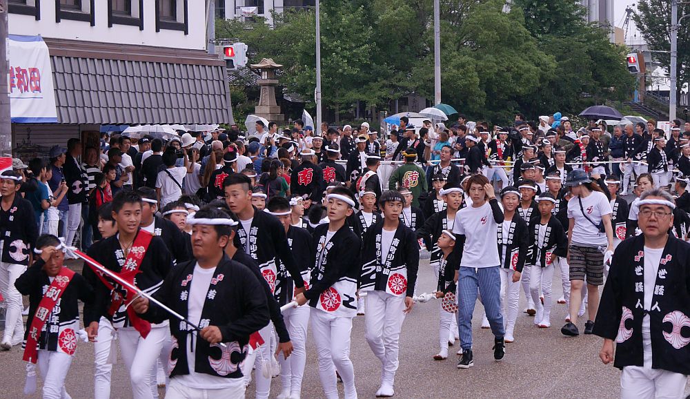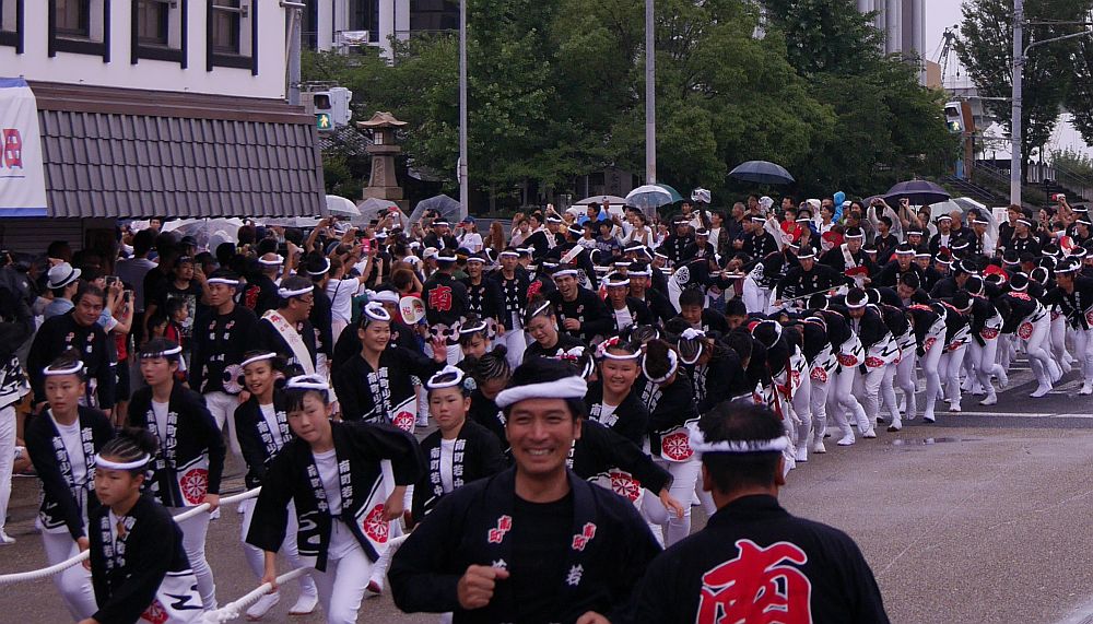 青年団が重なるように一体になって走ってきます。