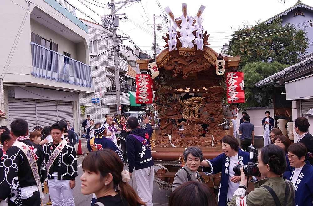 平成28年10月22日、守口市の新調南寺方地車お披露目曳行を見に行ってきました。 前日金曜日大安の日に入魂式のみ終えて、土曜の朝から記念式典が行われました。 そして午後からはいよいよお披露目曳行です。 新調地車お披露目曳行はたくさんのお稚児さんも参加して盛大に行われました。 では、守口市の新調南寺方地車お披露目曳行画像その3をご覧下さい。