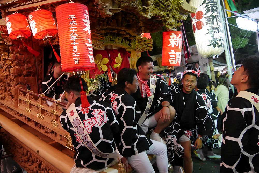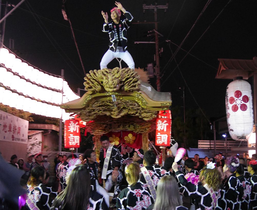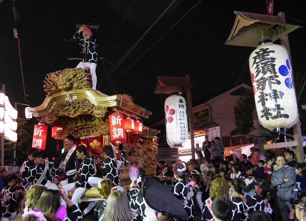 平成28年10月22日、守口市の新調南寺方地車夜の宮入を見に行ってきました。 前日金曜日大安の日に入魂式のみ終えて、土曜の朝から記念式典が行われました。 私は午後からのお披露目曳行見物と夜の宮入を見に行ってきました。 ここでは新調南寺方地車と北寺方地車の夜の産須那神社宮入の様子を紹介します。 では、守口市の新調南寺方地車夜の宮入画像その2をご覧下さい。