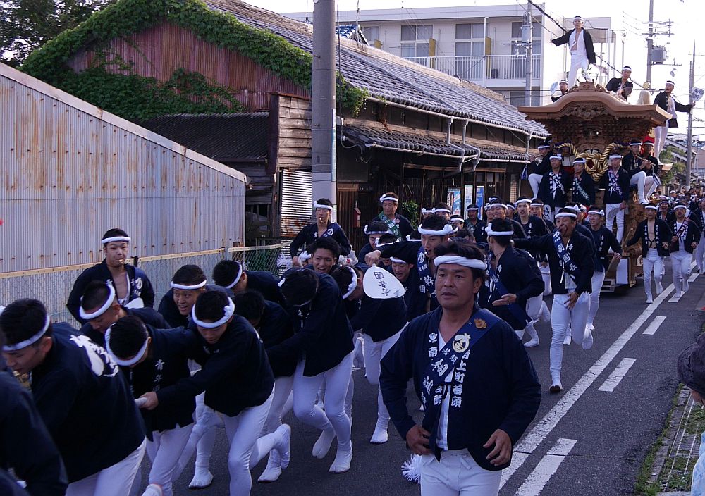 南上町の村中のメインストリートを南に向かって走る南上町地車