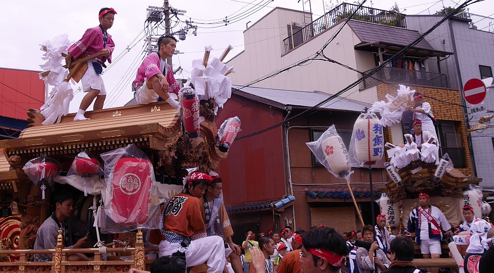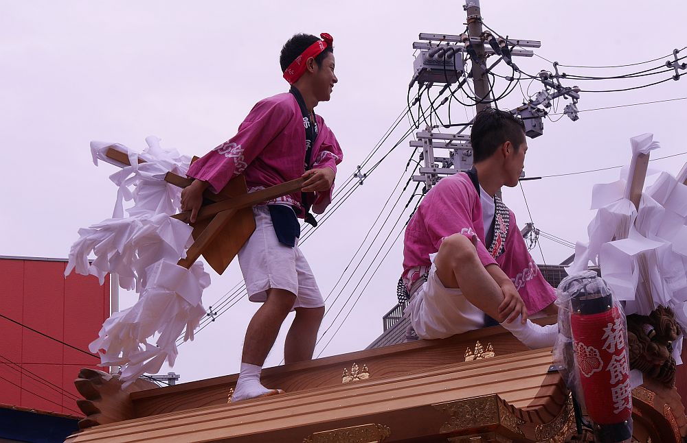 神輿が帰っていくのを見送る猪飼野地車と勝五地車