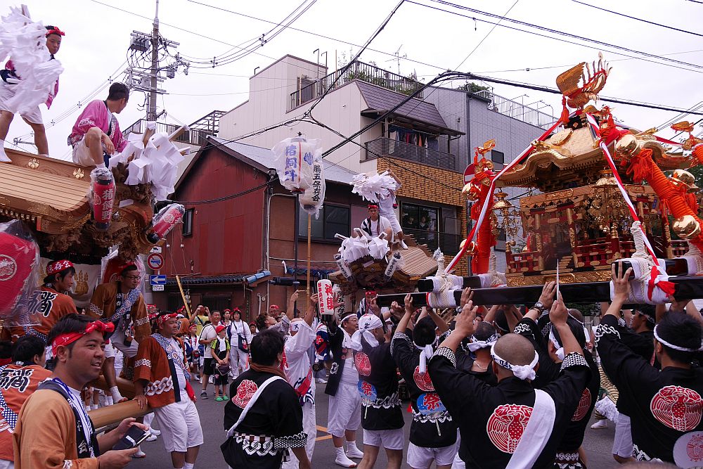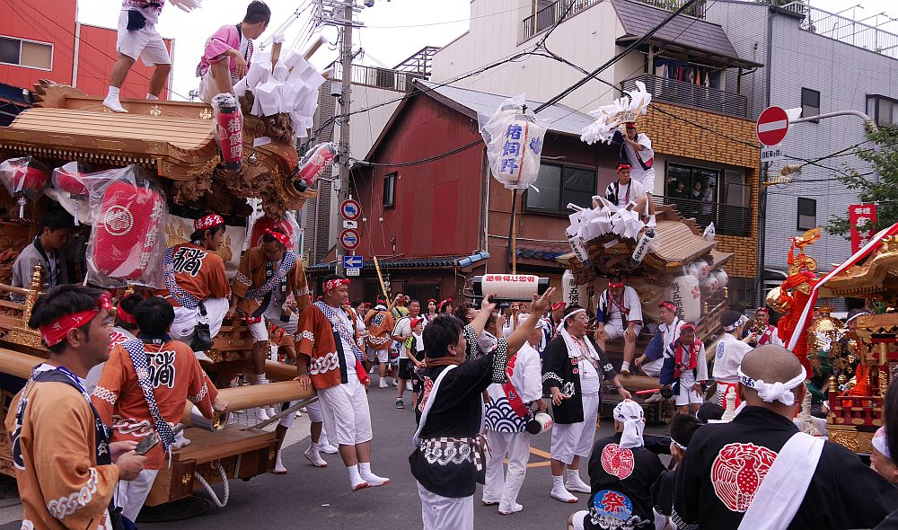 猪飼野地車、勝五地車、そして神輿が集まってきました。