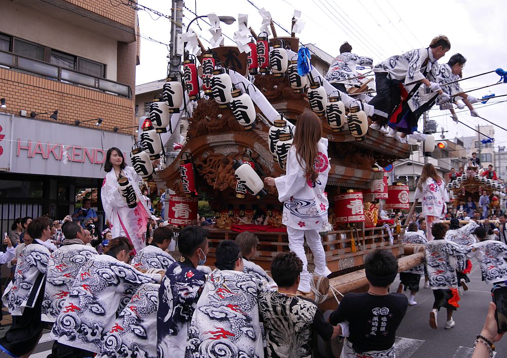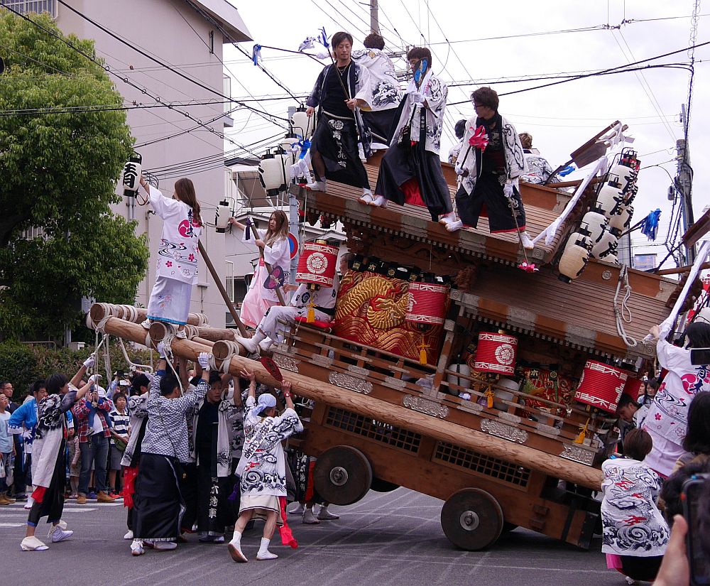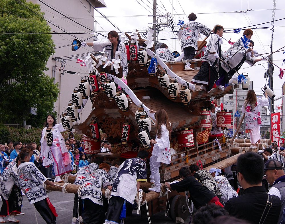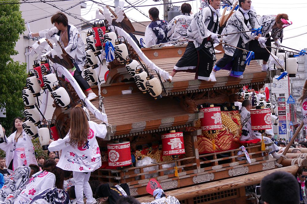 平成28年5月3日、神戸市東灘区の森稲荷3町練り合わせを見に行ってきました。 今年も森区の役員さんから情報もらって森、深江、青木の3台のパレードと八剣伝前での 練合せを楽しんできました。 ここでは八剣伝前での練り廻し3番、青木区地車の練り廻し画像を紹介します。 では、神戸市東灘区の森稲荷3町練り合わせ画像その3:青木をご覧下さい。