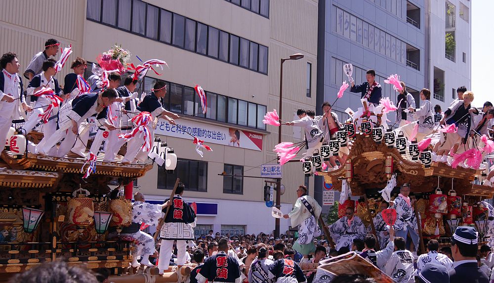 10台の地車が集まり、練り回す本山だんじりパレード。