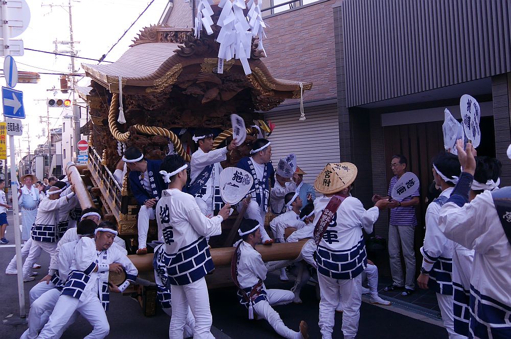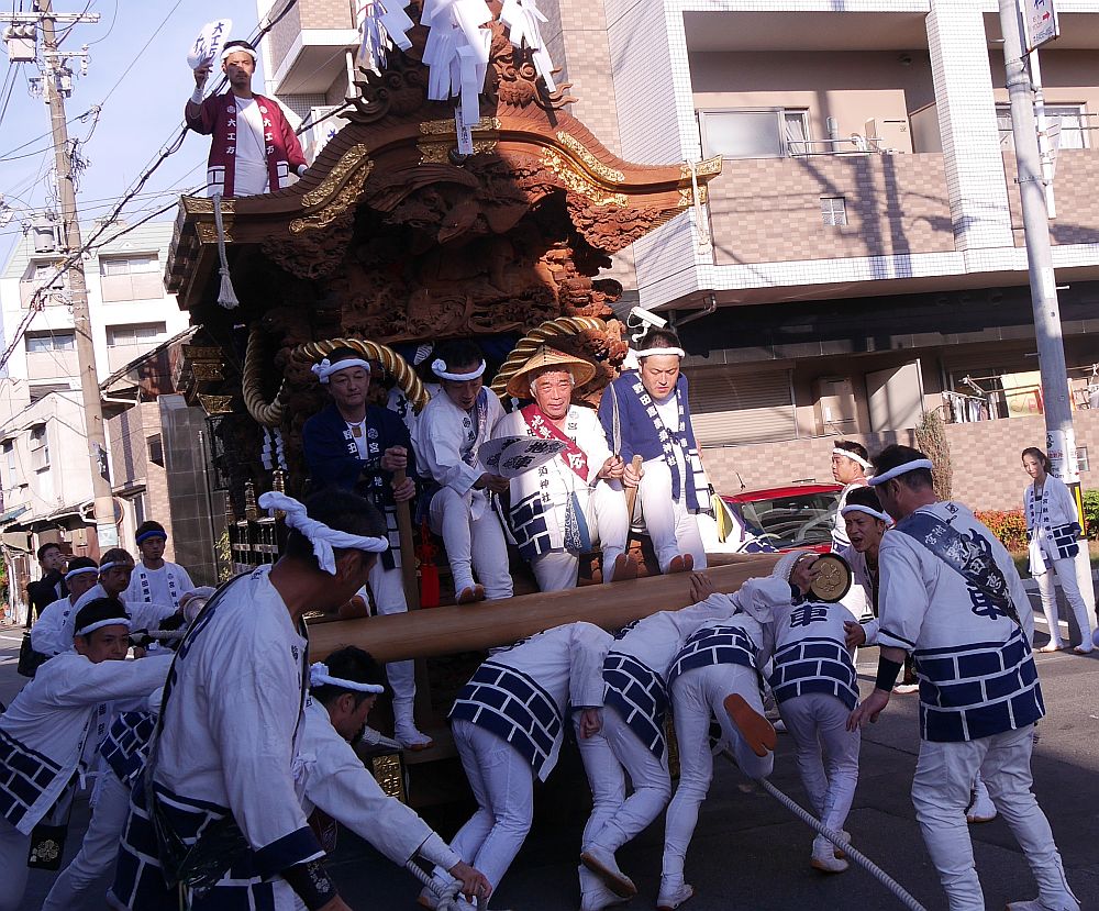 野田恵美須宮附地車の統制された清々しい曳行です。