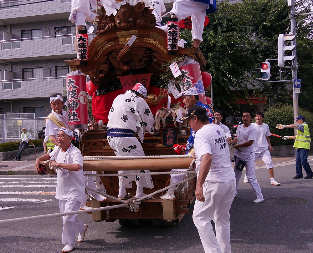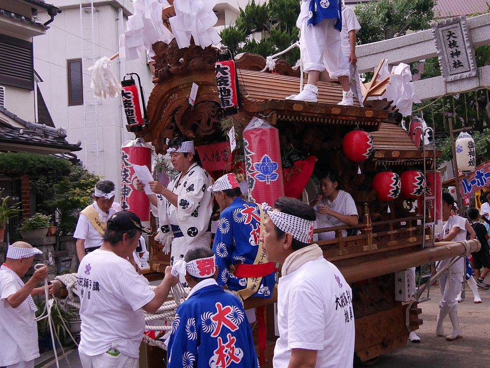 平成28年7月10日、守口市の大枝地車夏祭り曳行を見に行ってきました。 夏祭りの2日間とも曳行する大枝地車。 私は本宮の午前中に大枝神社へ向かいましたが、まだ地車は小屋の中。 関係者に予定を聞くと、本宮は午後3時集合3時半出発とのこと。 城東区でだんじり見物してから自転車で戻ってきたのが午後3時25分。 まさに出発するところでした。 では、守口市の大枝地車夏祭り曳行画像その1をご覧下さい。