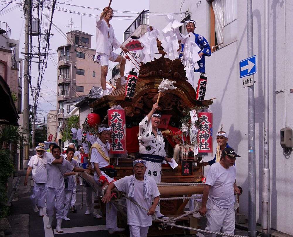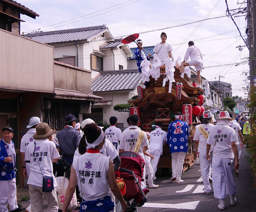 大枝地区を南北に縦断するバス通りを守口市駅方向へ向かって進む大枝地車