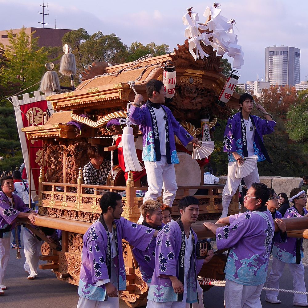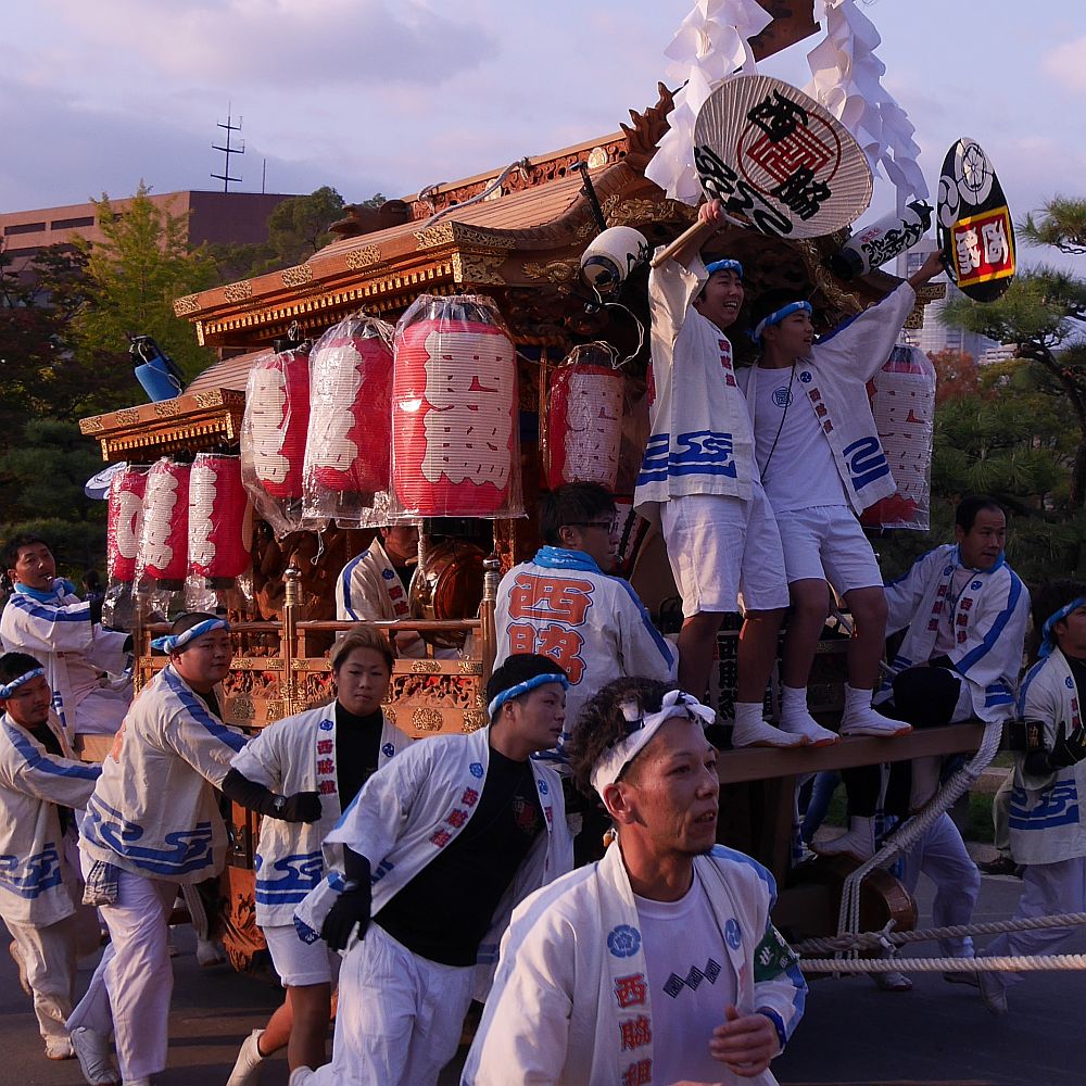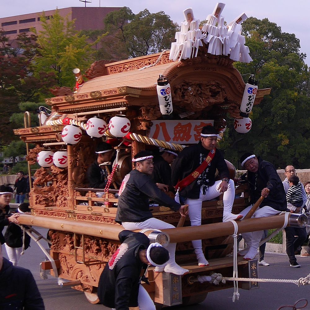 朝のパレードが終わり、パレード最後尾の南寺方地車が太陽の広場へ