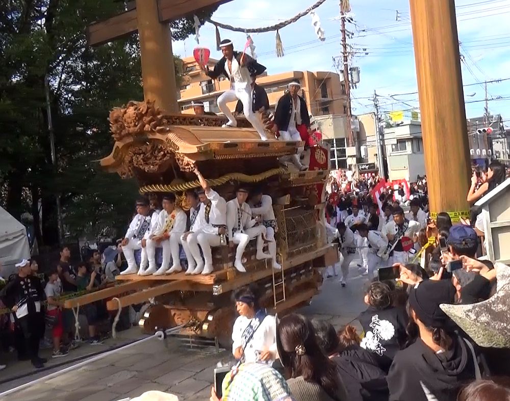 午前9時15分、大鳥大社前で待機する大鳥地車と野田地車