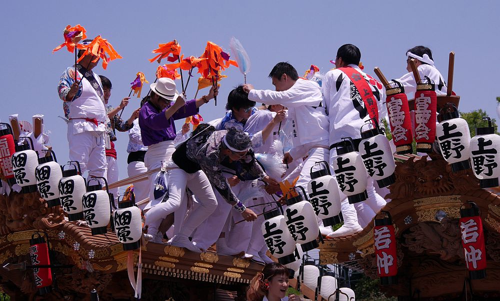 都賀川に架かる篠原橋の東で待機中の畑原地車と上野地車