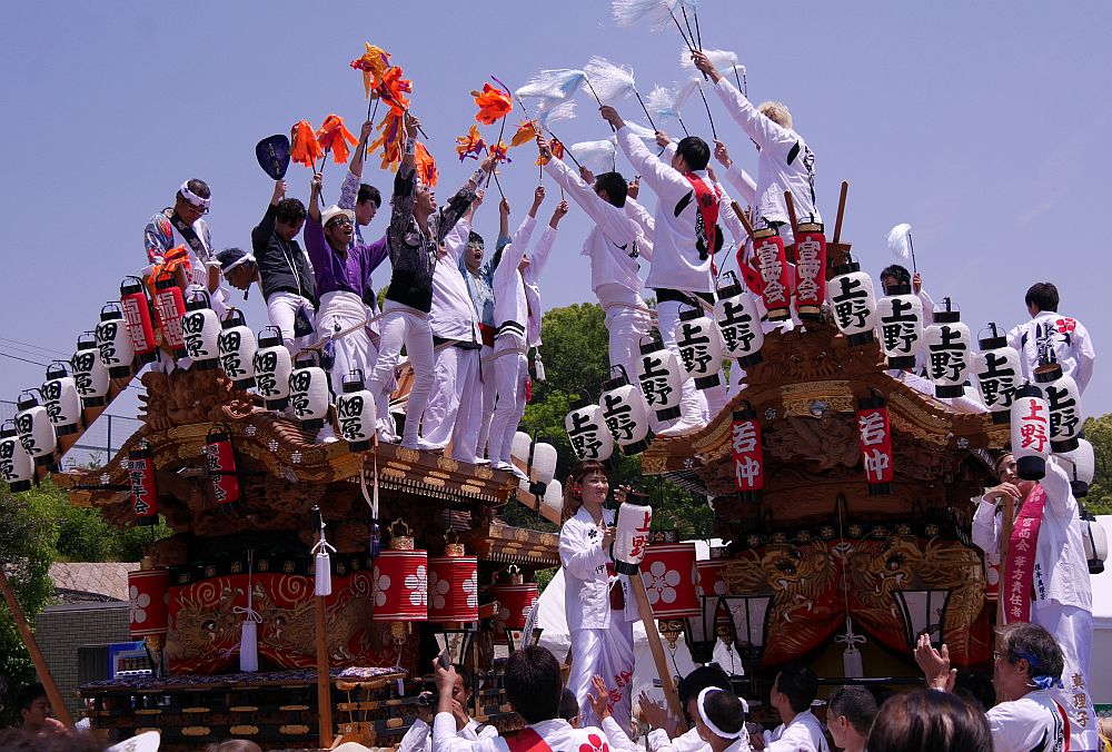 先に着いていた畑原地車が上野地車を迎えに行きます。