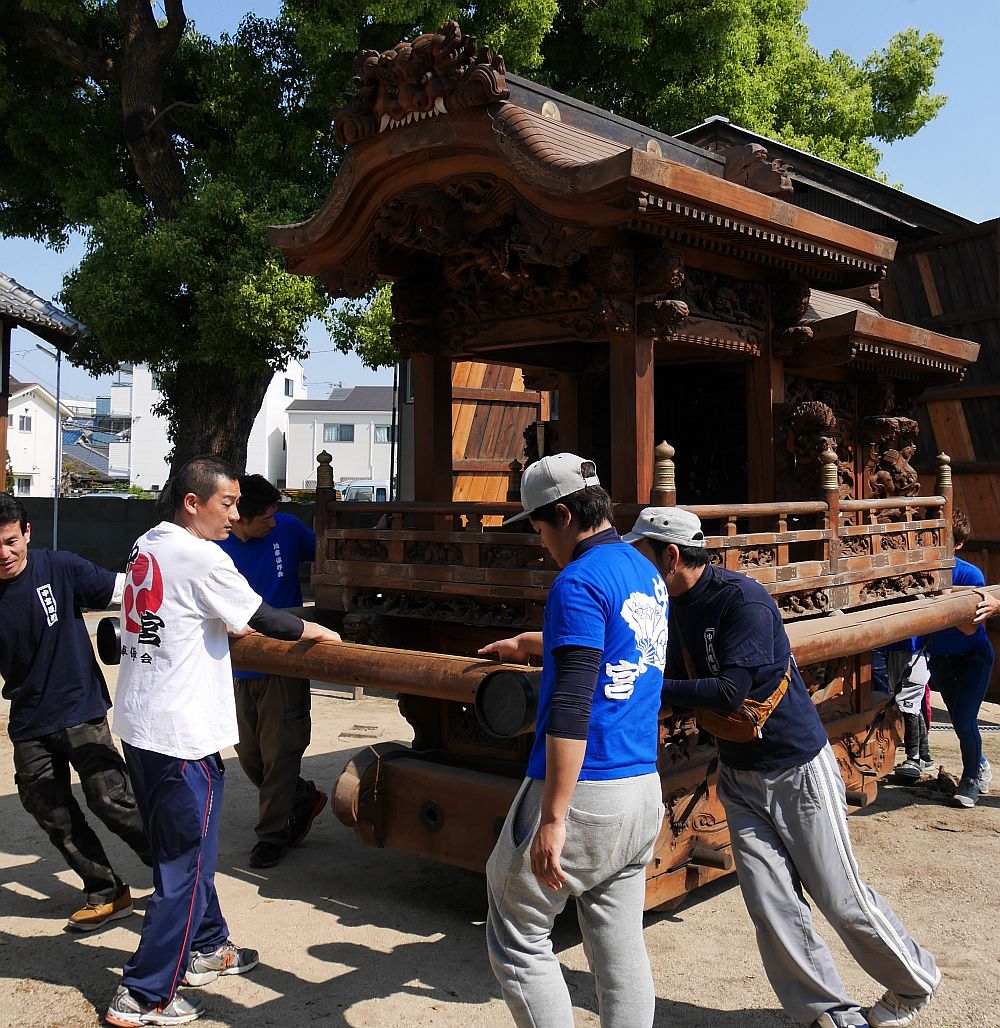 搬出作業を行う人が来るまで、小屋の中の地車を撮影。