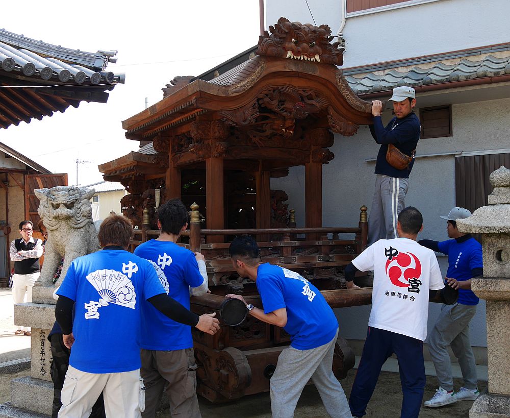 ブルーシートを外してもらい、佐堂地車がその姿を現しました。