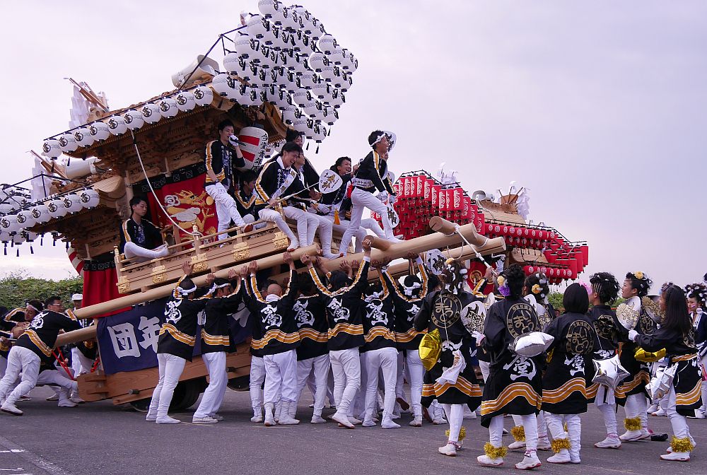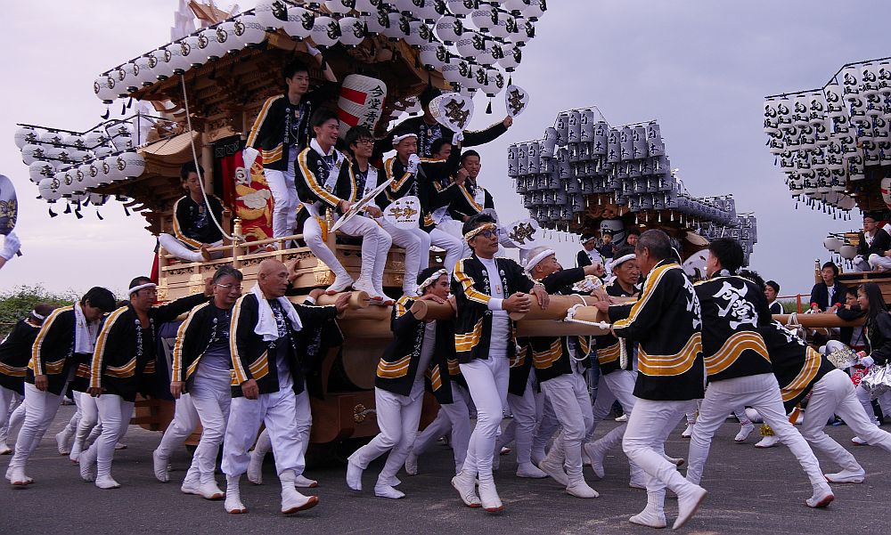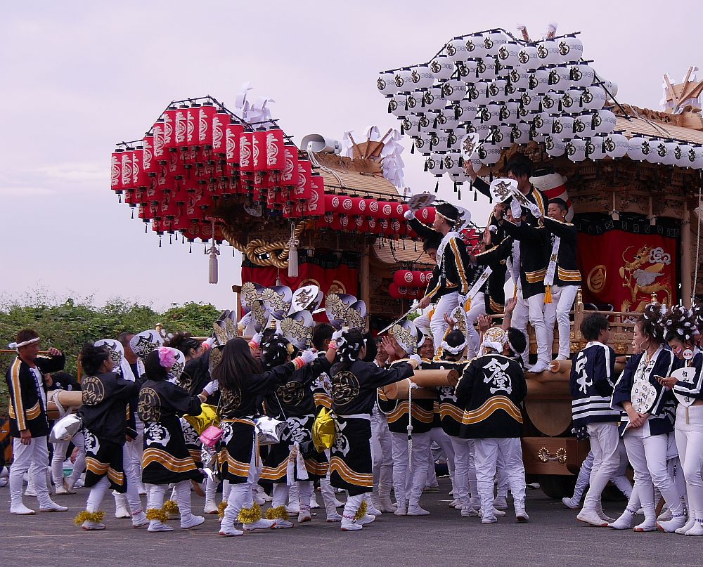 河南町の平石、今堂、白木、長坂、寺田、北加納、南加納の7台の地車が集結し、