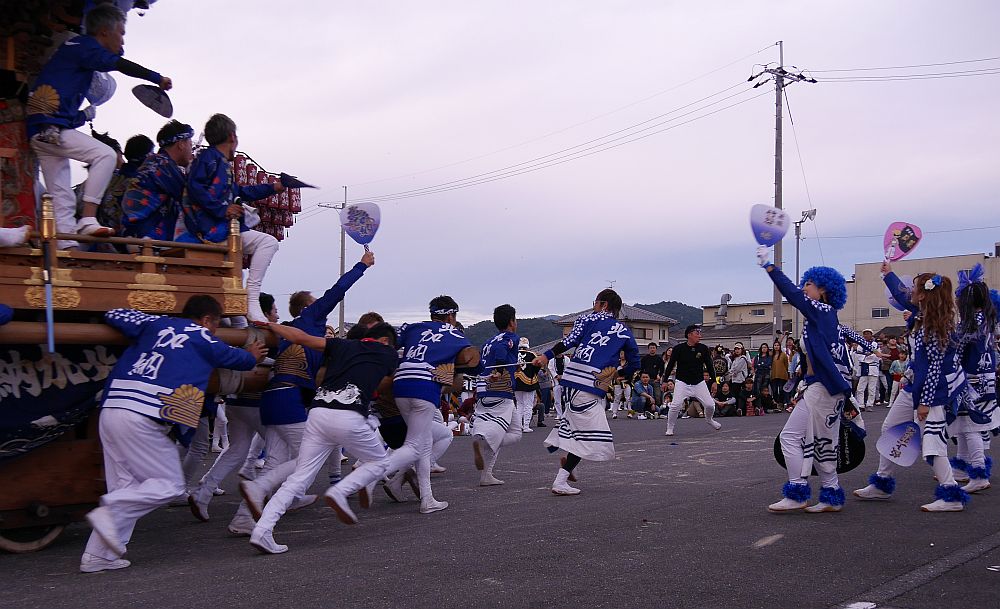 河南町の南大伴交差点手前辺りから寺田交差点まで、いろんな地車に出会いながら、