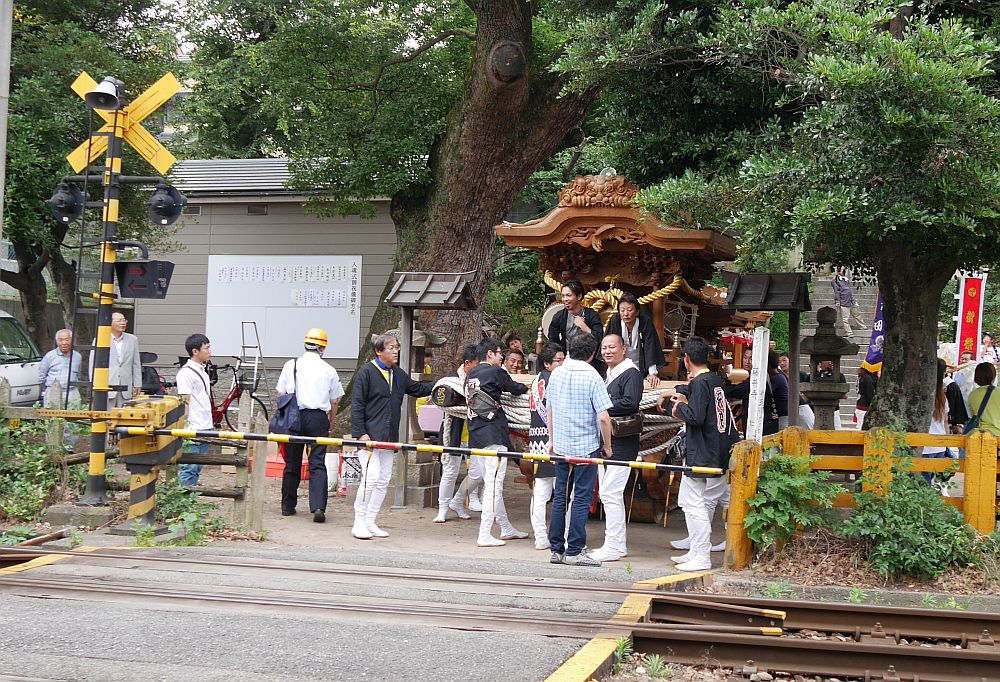 そう、ここ沢田八幡神社は境内の中を近鉄電車が走ってるんです♪
