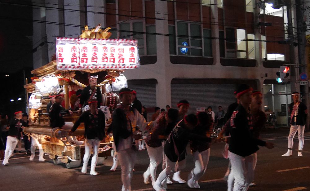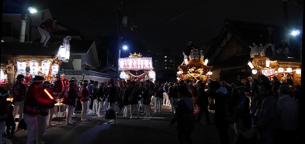 午後6時半、来通寺前に集まってきた鴫野5町地車