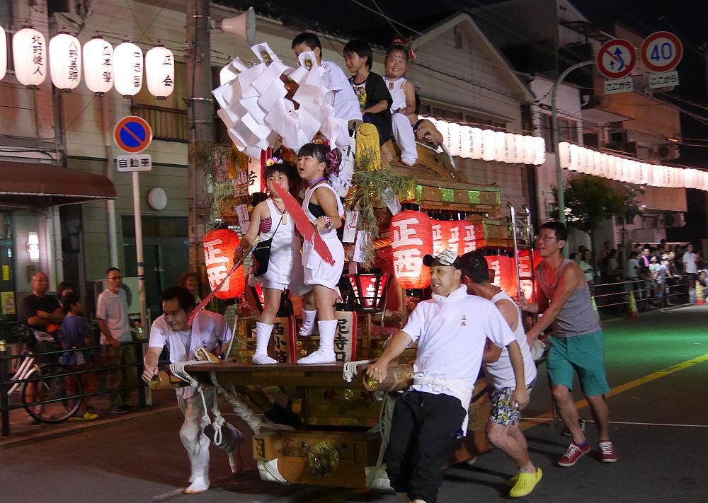 地車の前に乗る女の子2人、めっちゃパワーもあり粋ですね。