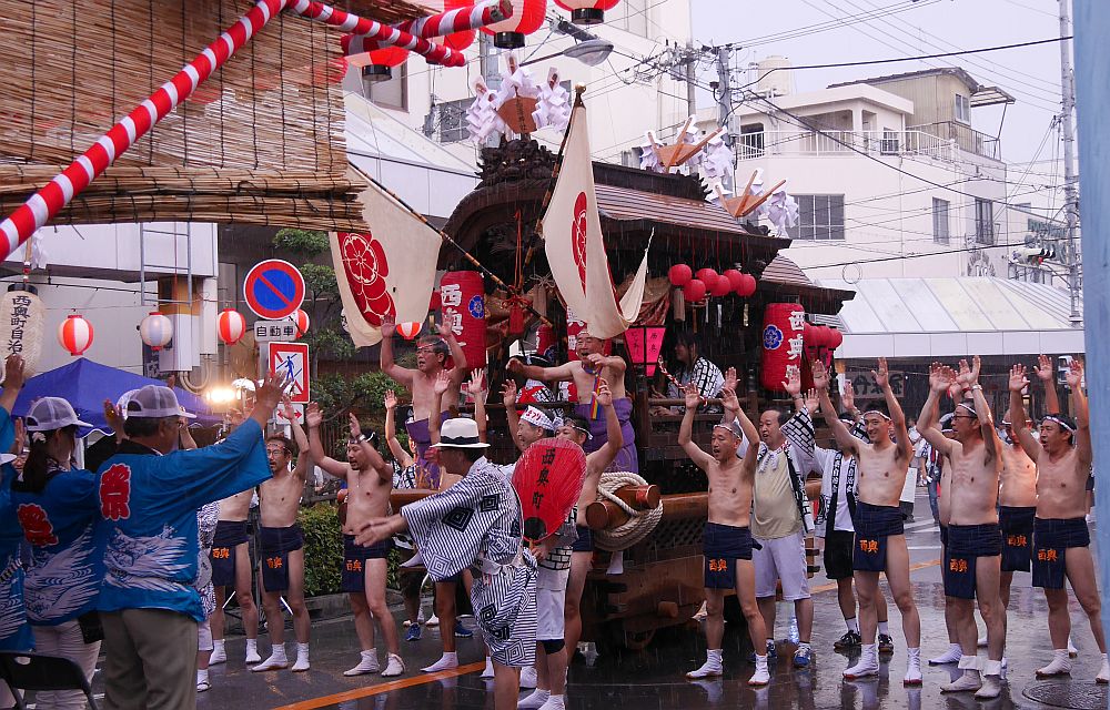 六地蔵地車と浜の堂地車が手打ち、そしてばんざーい♪