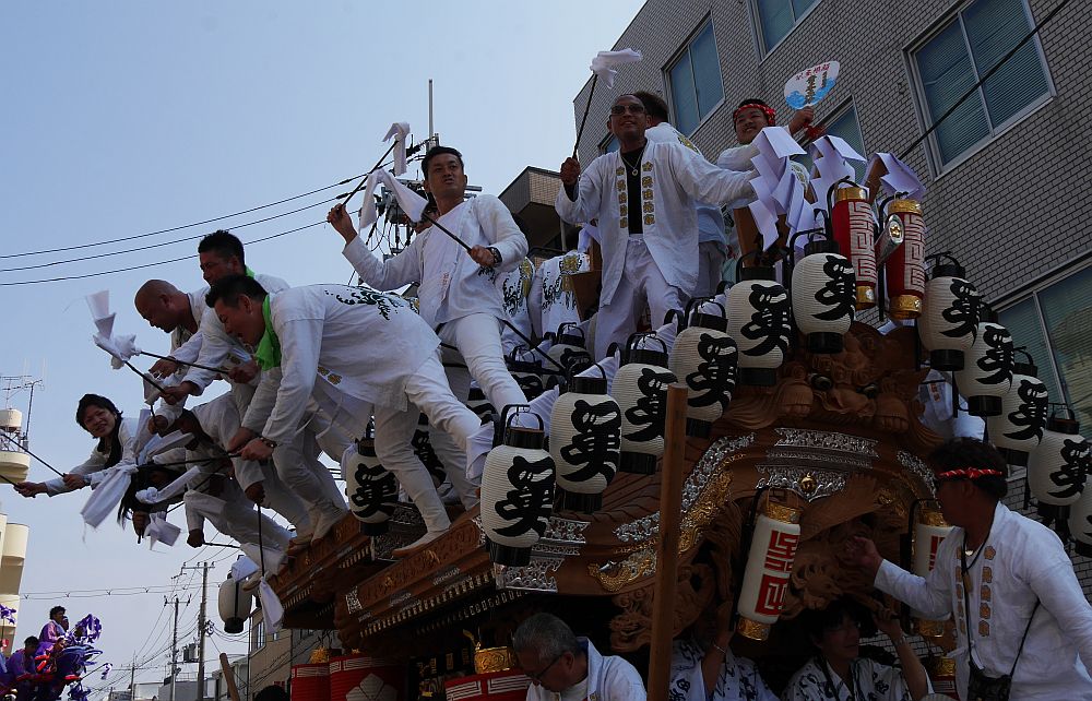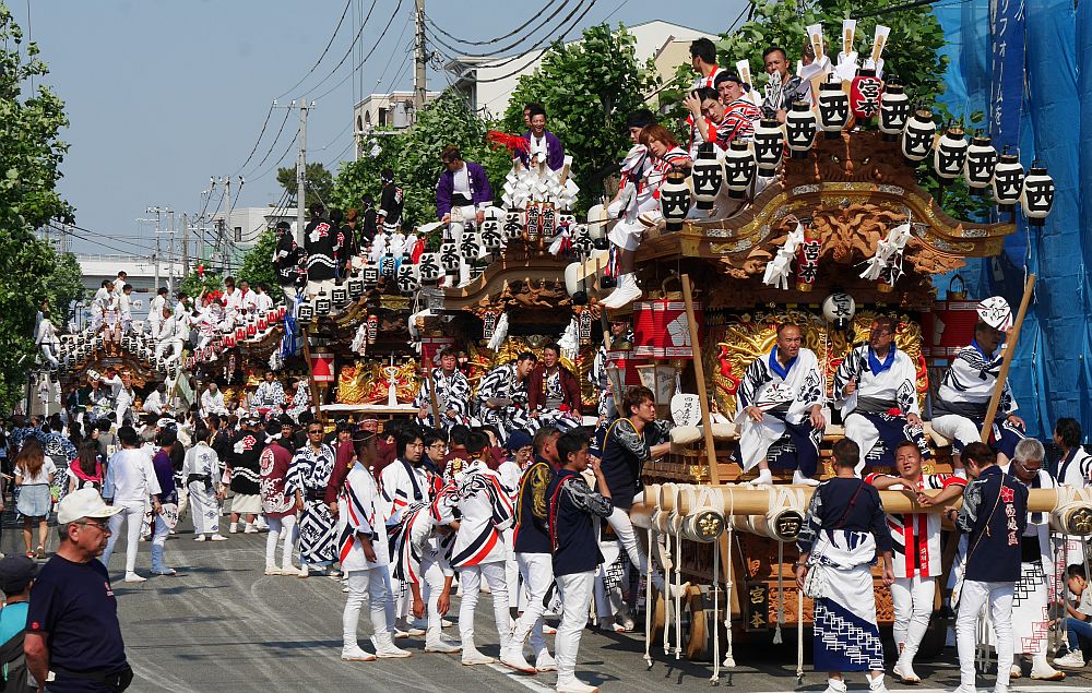 この日は本住吉神社名誉宮司就任お祝いで住吉地区と庄内地区計13台の地車が曳行しました。