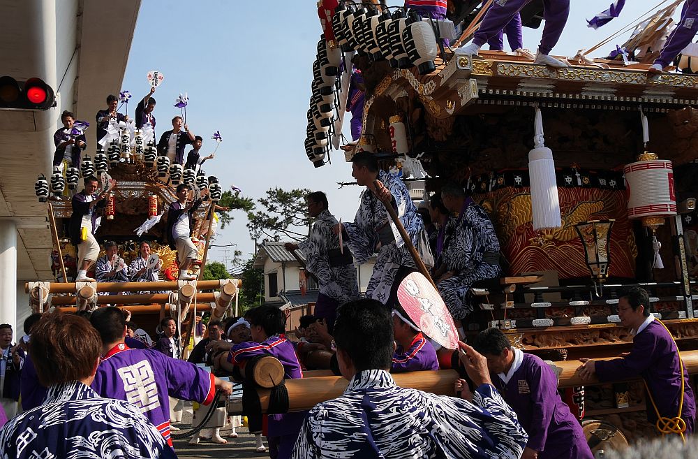 田中地車が吉田区地車の待つ反高橋の上まで来ました。