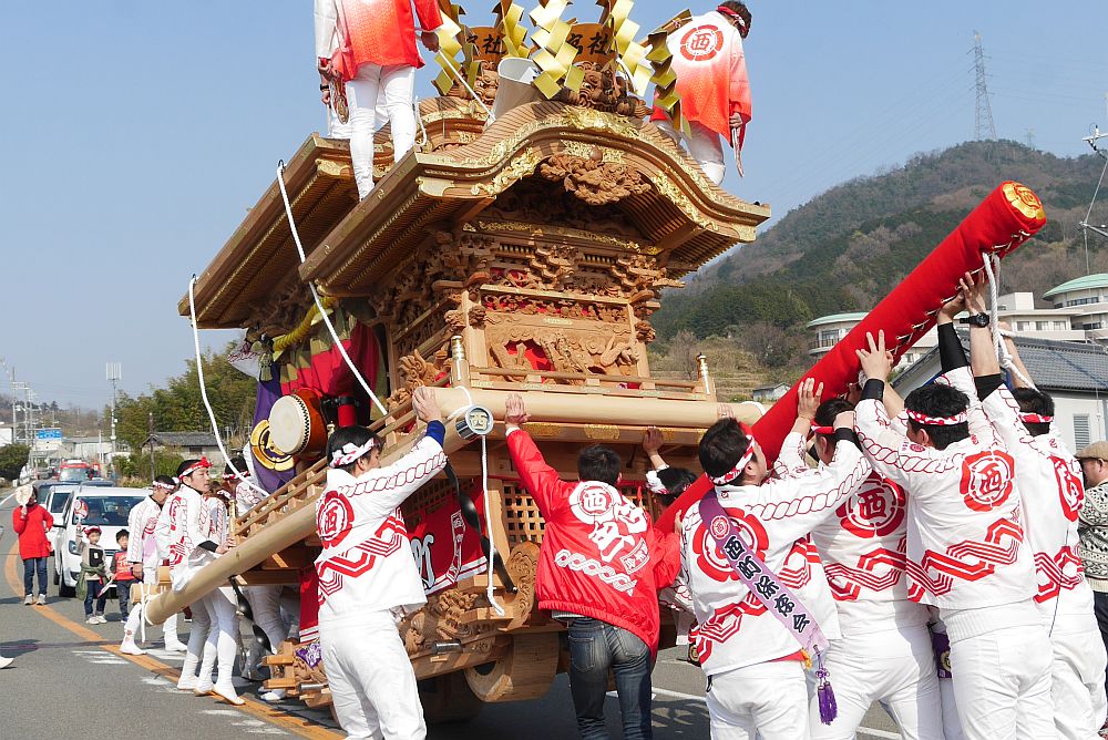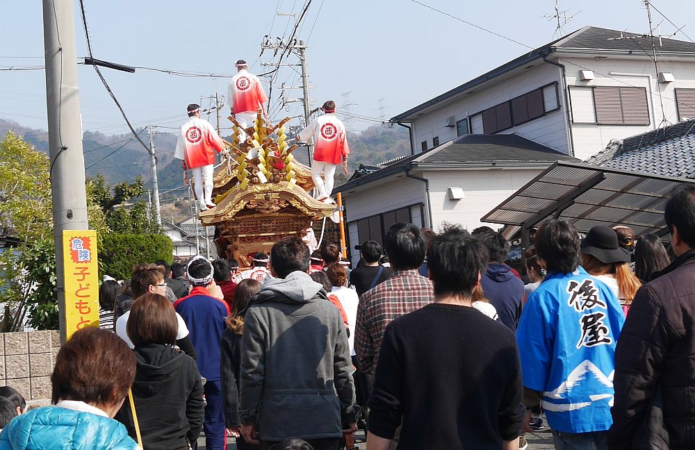 科長神社への坂道を登る西町地車