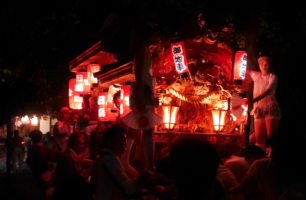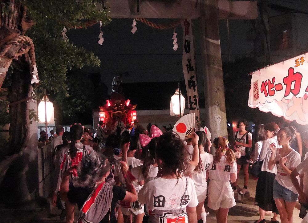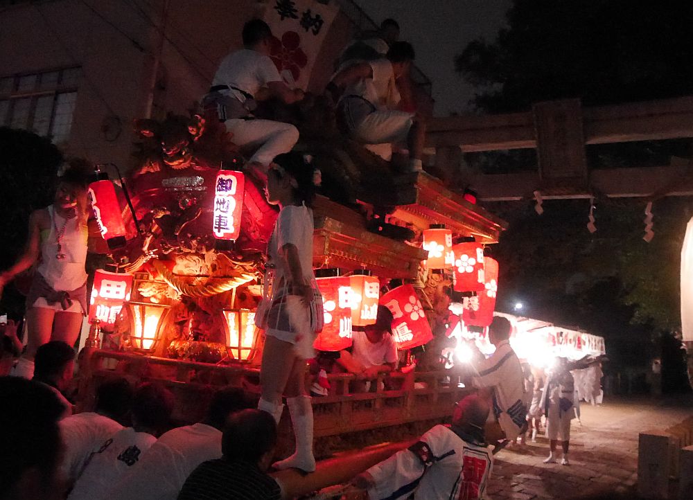 午後9時50分、鳥居をくぐり抜け、田嶋地車宮入