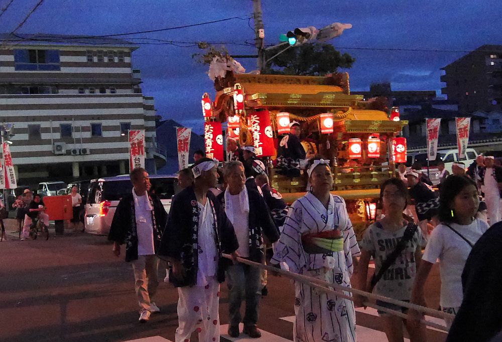 こちらは宮入に向けて旧道へ入ってくる矢柄地車です。