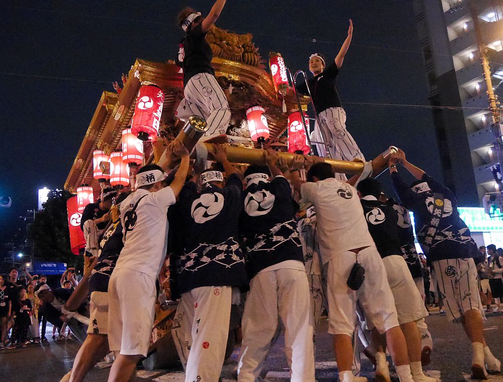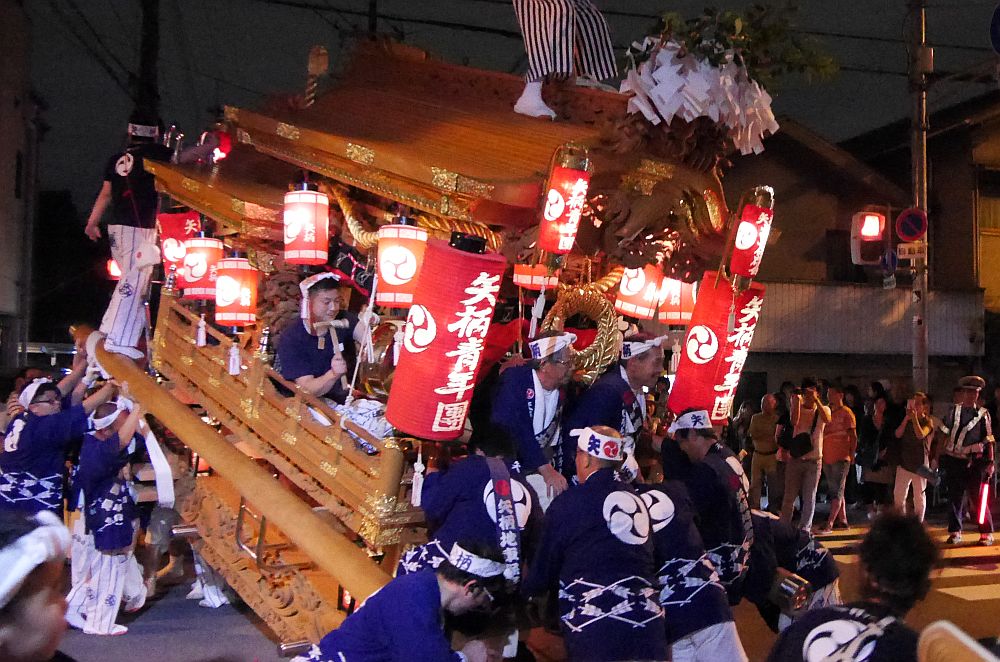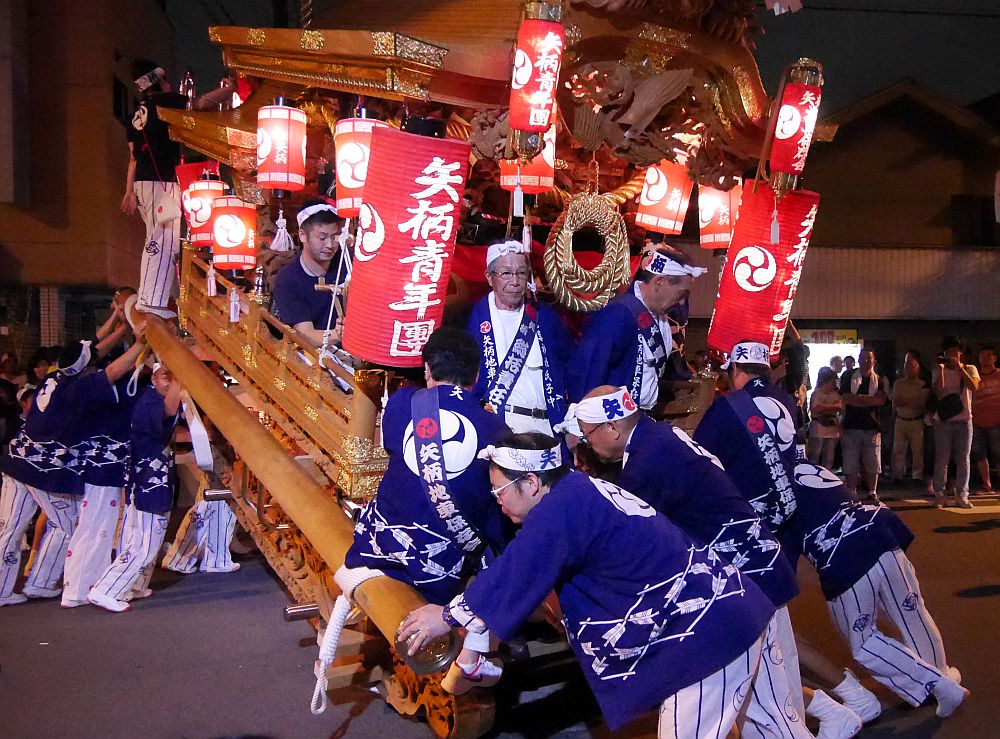 宮入を待っていた矢柄地車、手打ちして、さぁ出発です。