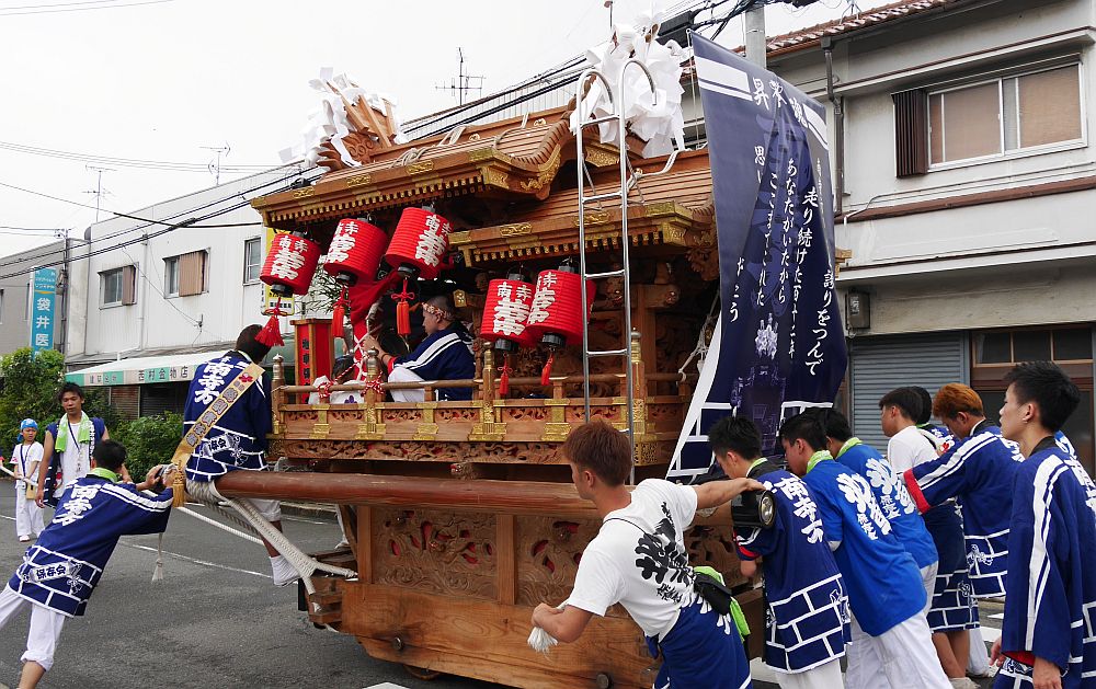 今度の秋祭りには新調地車が完成する南寺方地区、現地車は夏祭りが最後の曳行です。