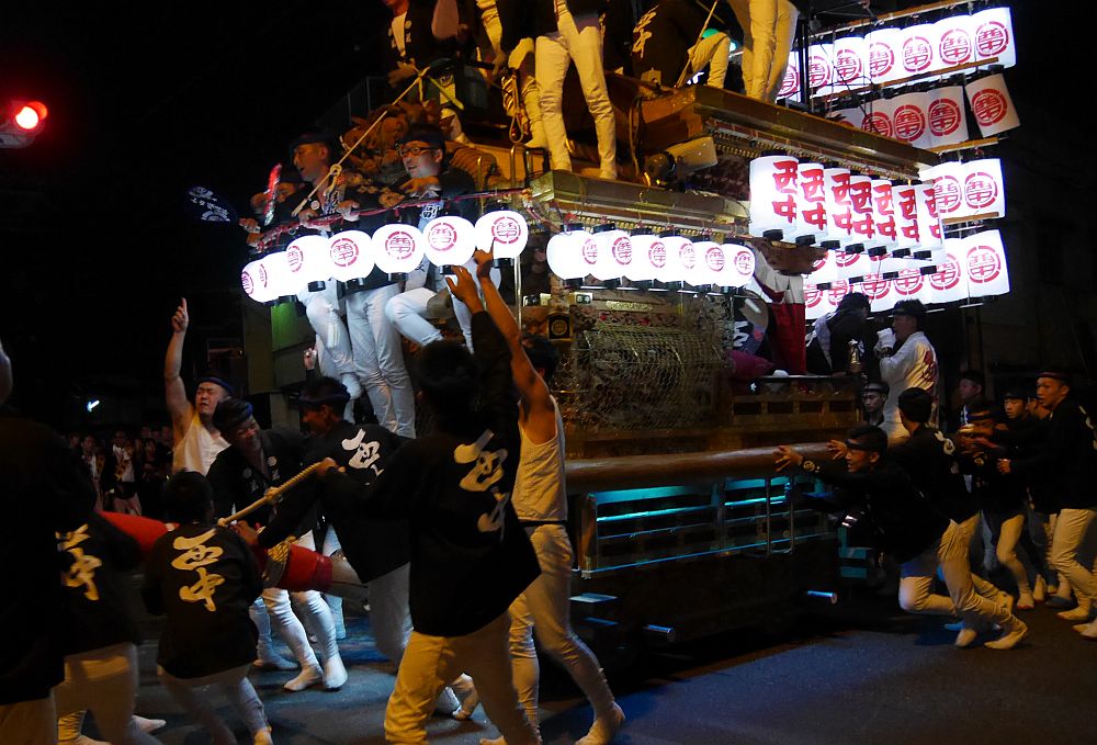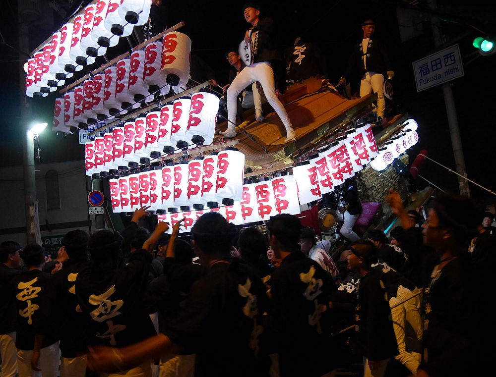 平成28年10月8日、堺市の陶器地区ライフ前パレードを見に行ってきました。 この日は岸和田市山手地区の曳き出し曳行から始まり、一番たくさん地車を見て回った日。 その最後は陶器地区のライフ前パレード見物です。 第1部は福中、西中、山本、隠の4台が参加して行われました。 パレード順に練り回しの様子を中心に、入場退場も含めて紹介しています。 ここでは練り回し2番目の西中の画像を紹介します。 では、堺市の陶器地区ライフ前パレード画像その2:西中をご覧下さい。