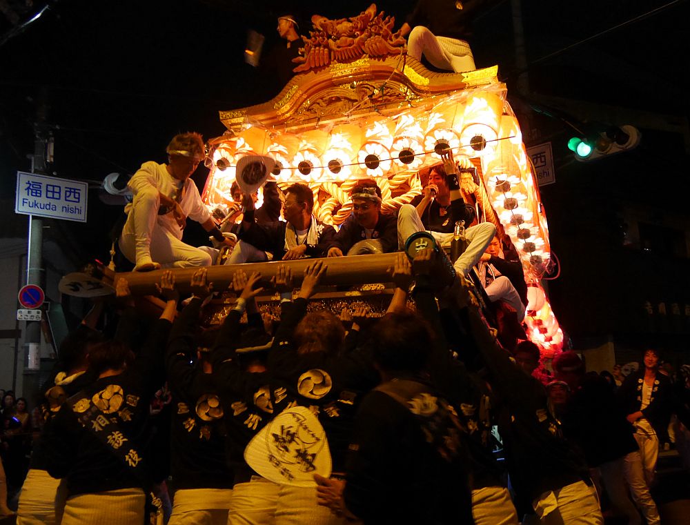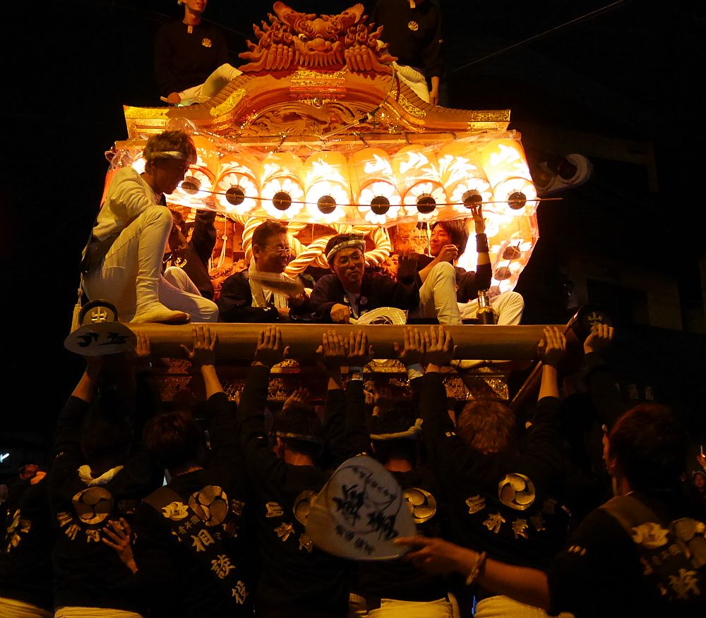 平成28年10月8日、堺市の陶器地区ライフ前パレードを見に行ってきました。 この日は岸和田市山手地区の曳き出し曳行から始まり、一番たくさん地車を見て回った日。 その最後は陶器地区のライフ前パレード見物です。 第1部は福中、西中、山本、隠の4台が参加して行われました。 パレード順に練り回しの様子を中心に、入場退場も含めて紹介しています。 ここでは練り回し3番目の山本の画像を紹介します。 では、堺市の陶器地区ライフ前パレード画像その3:山本をご覧下さい。