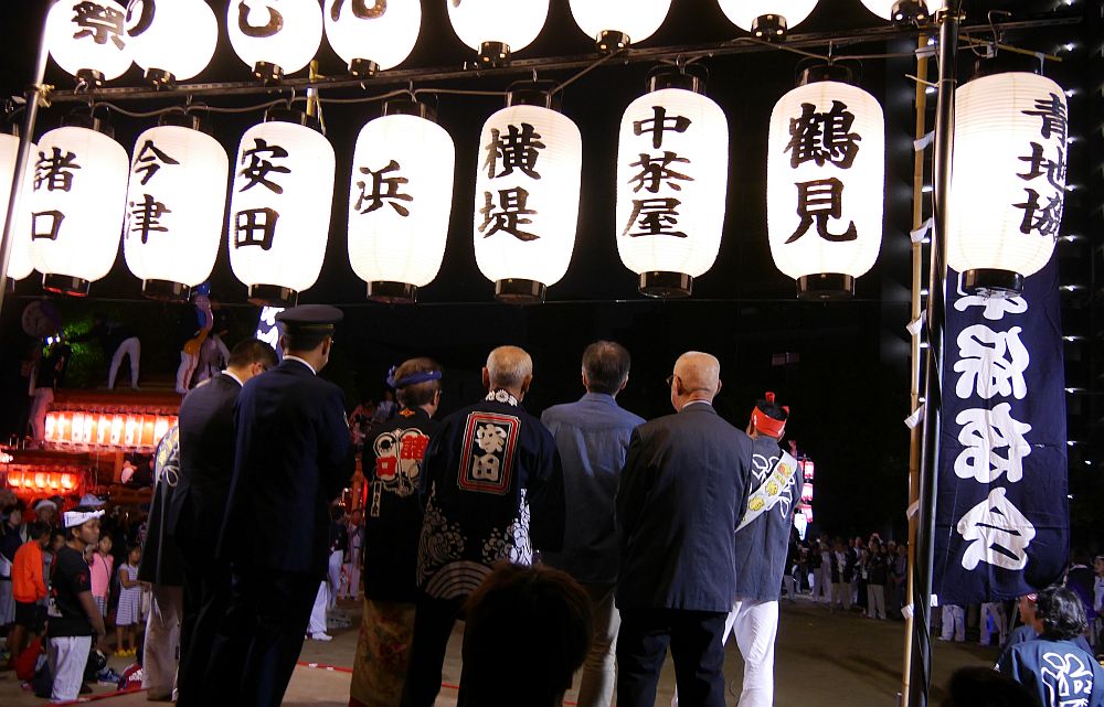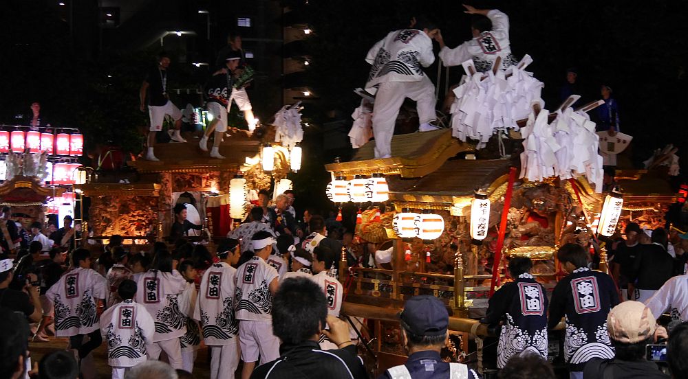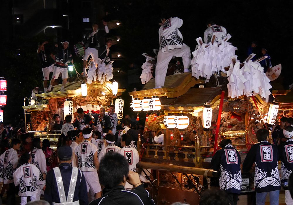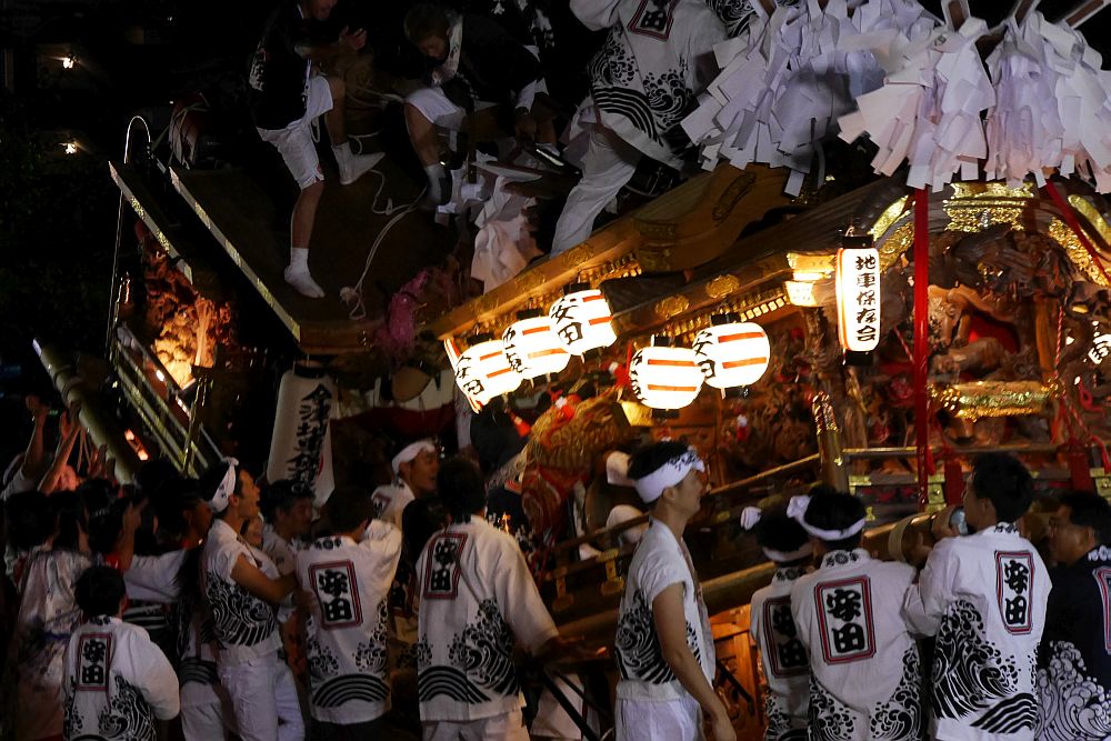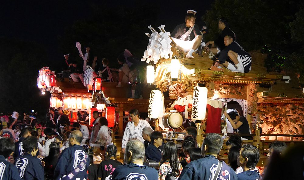 左右に3台ずつ、そして中央に地元の浜地車が並びました。