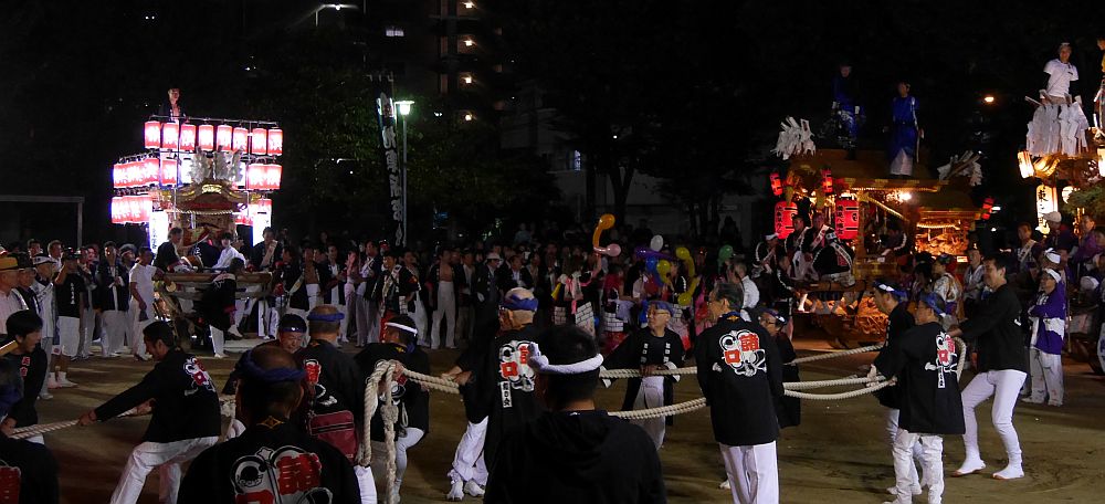 諸口の曳き綱が公園中央を斜めに張られてます。