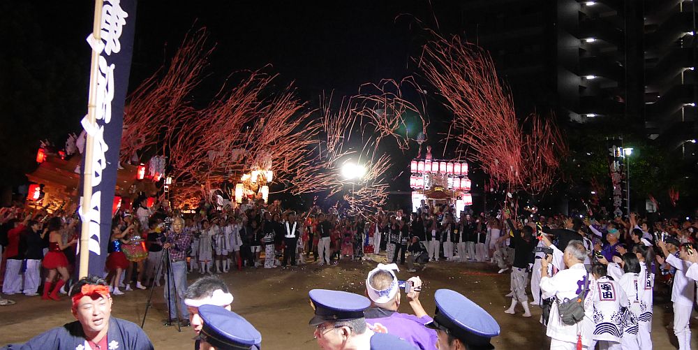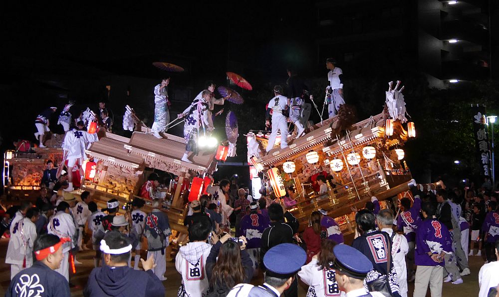 鶴見東之町も出て来て、会場中央で中茶屋と浜、鶴見東之町の3台が向かい合いました。