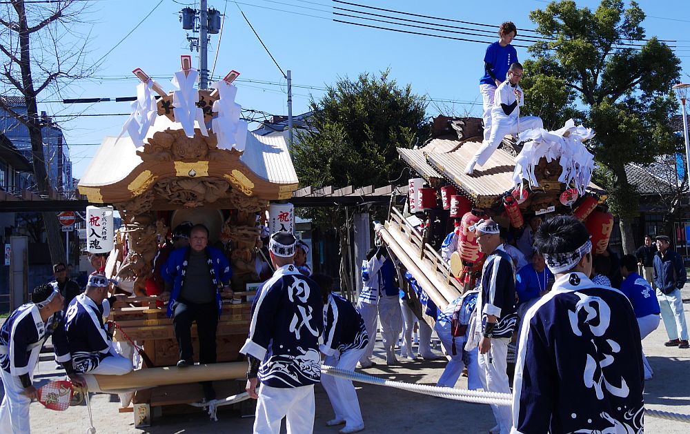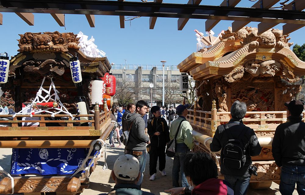 午後2時、内代公園内に並んだ内代地車と中宮地車