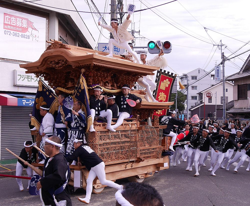 私は八木地区宮入曳行を久米田駅北側の大町交差点辺りで撮影してきました。