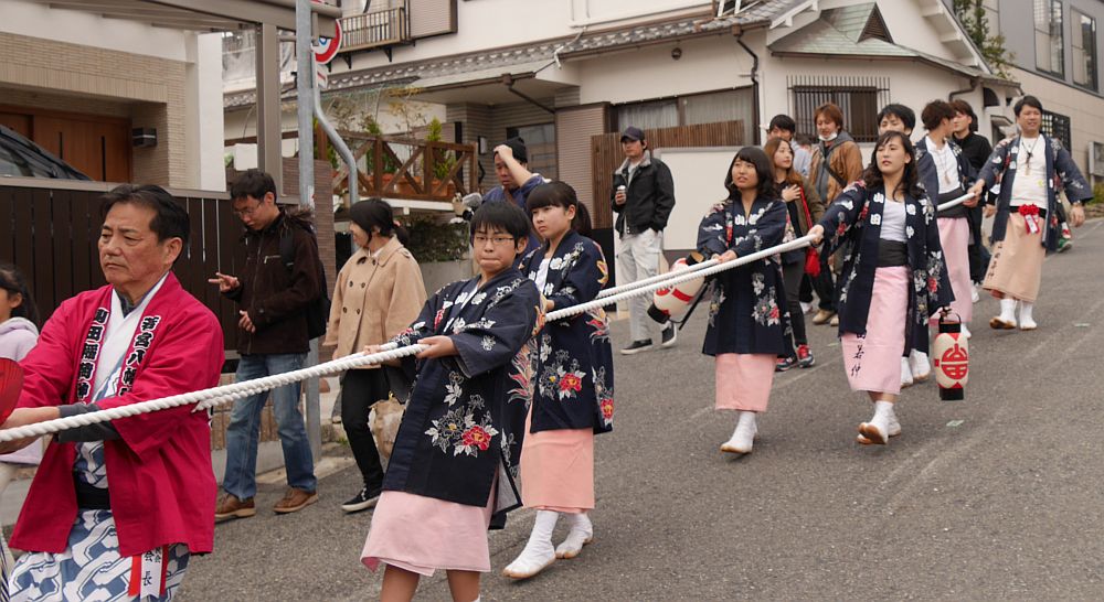 後ろから曳き綱を曳きながらゆっくりゆっくりと進みます。