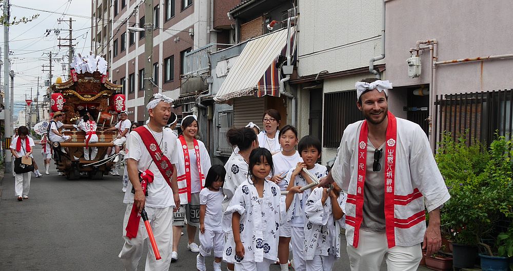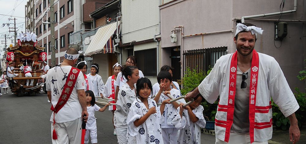 さらに自転車を走らせていくと、だんじり知り合いの方が向こうから歩いて来ます。
