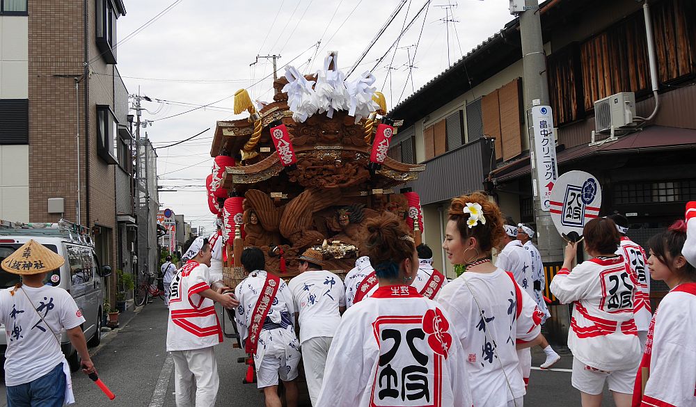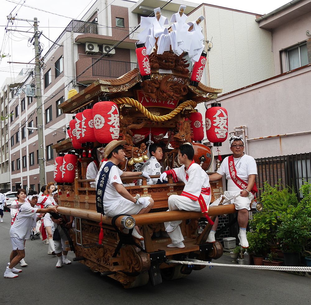 太鼓の合図で曲がり角のお囃子に変わり、左折