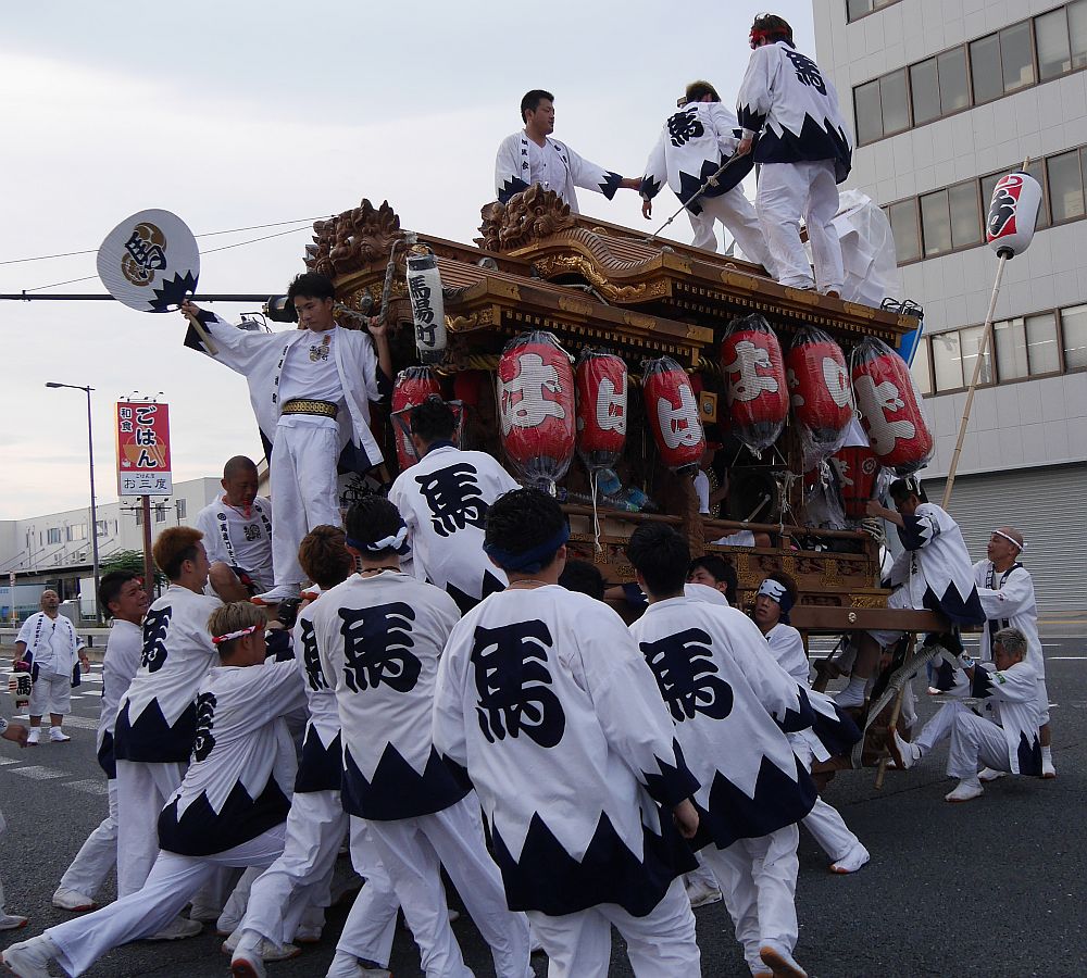 夕方からの曳行は全町ともにこのように曳き綱無しでした。