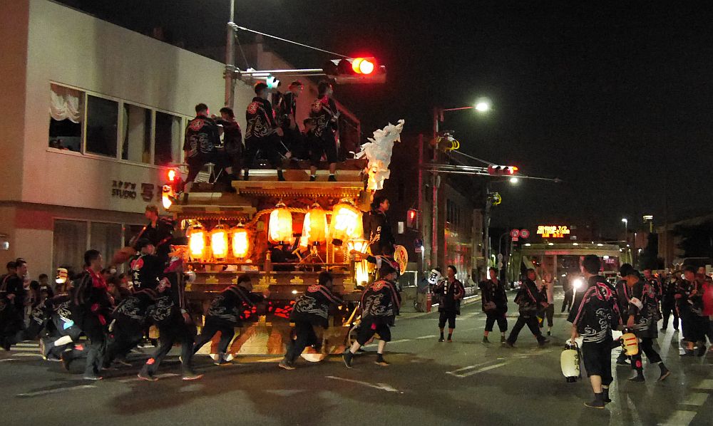 泥堂町地車が宮前交差点へ突っ込んでいきます。