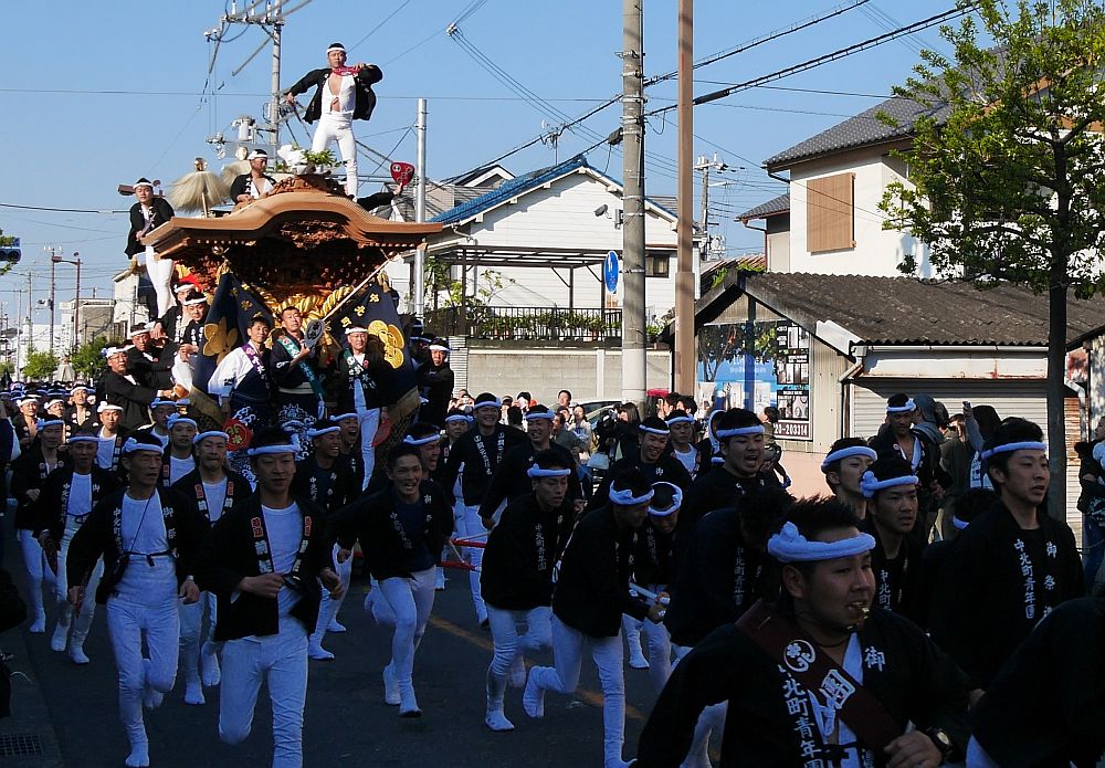 堺町地車の前を走る中北町地車