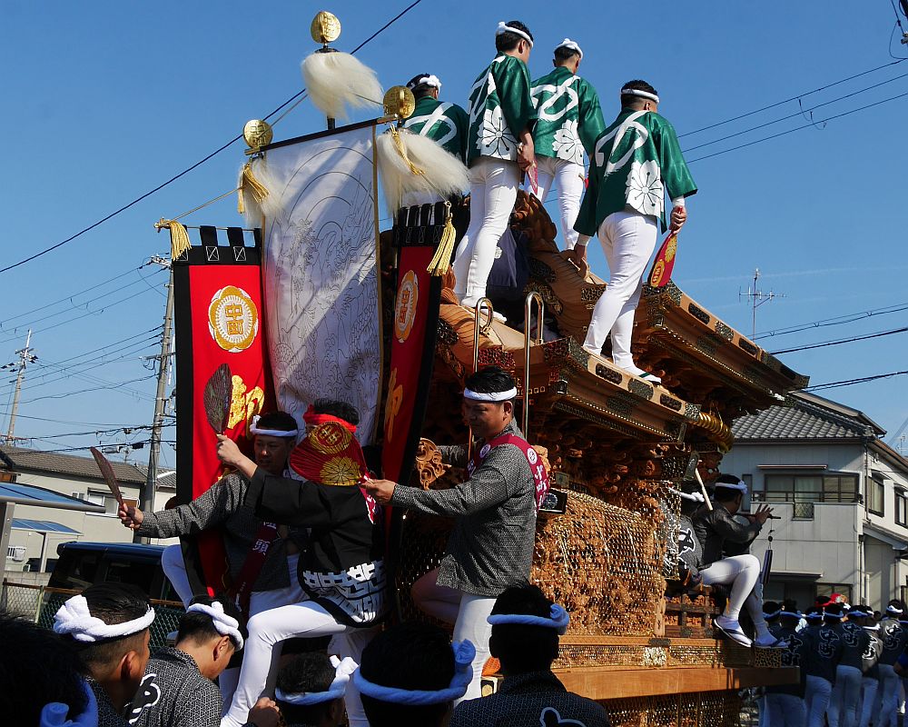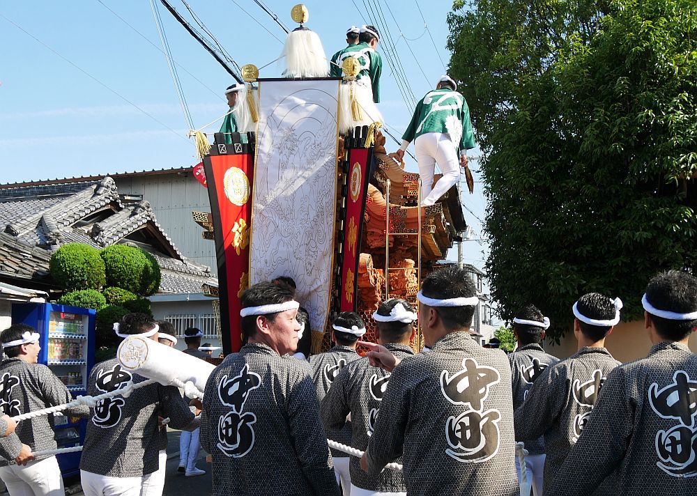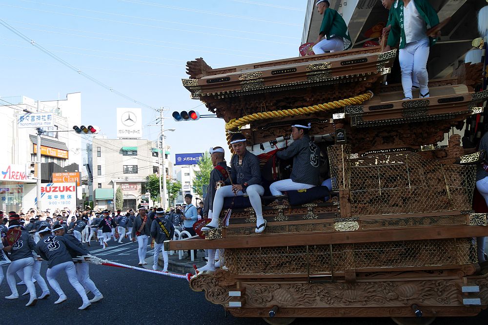 歩行曳行が終わり、少し曳き綱を短くして曳行再開