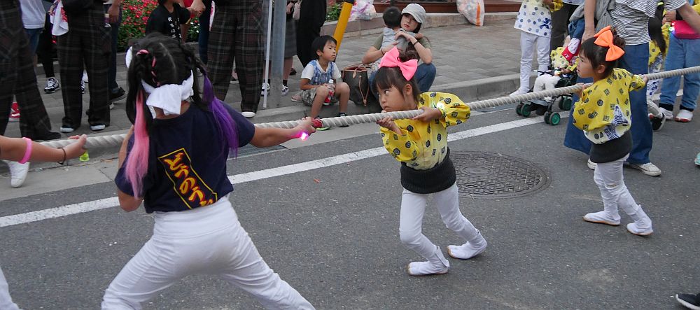 ハチマキから腹マキまで揃いの衣装の女の子たちです。